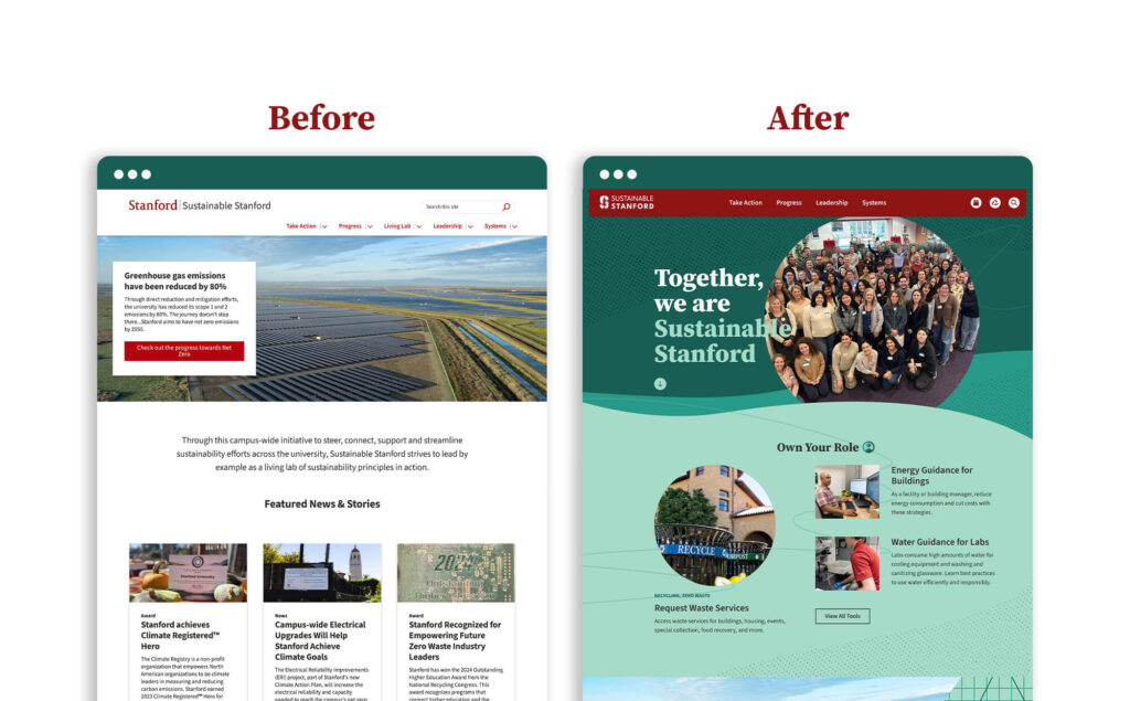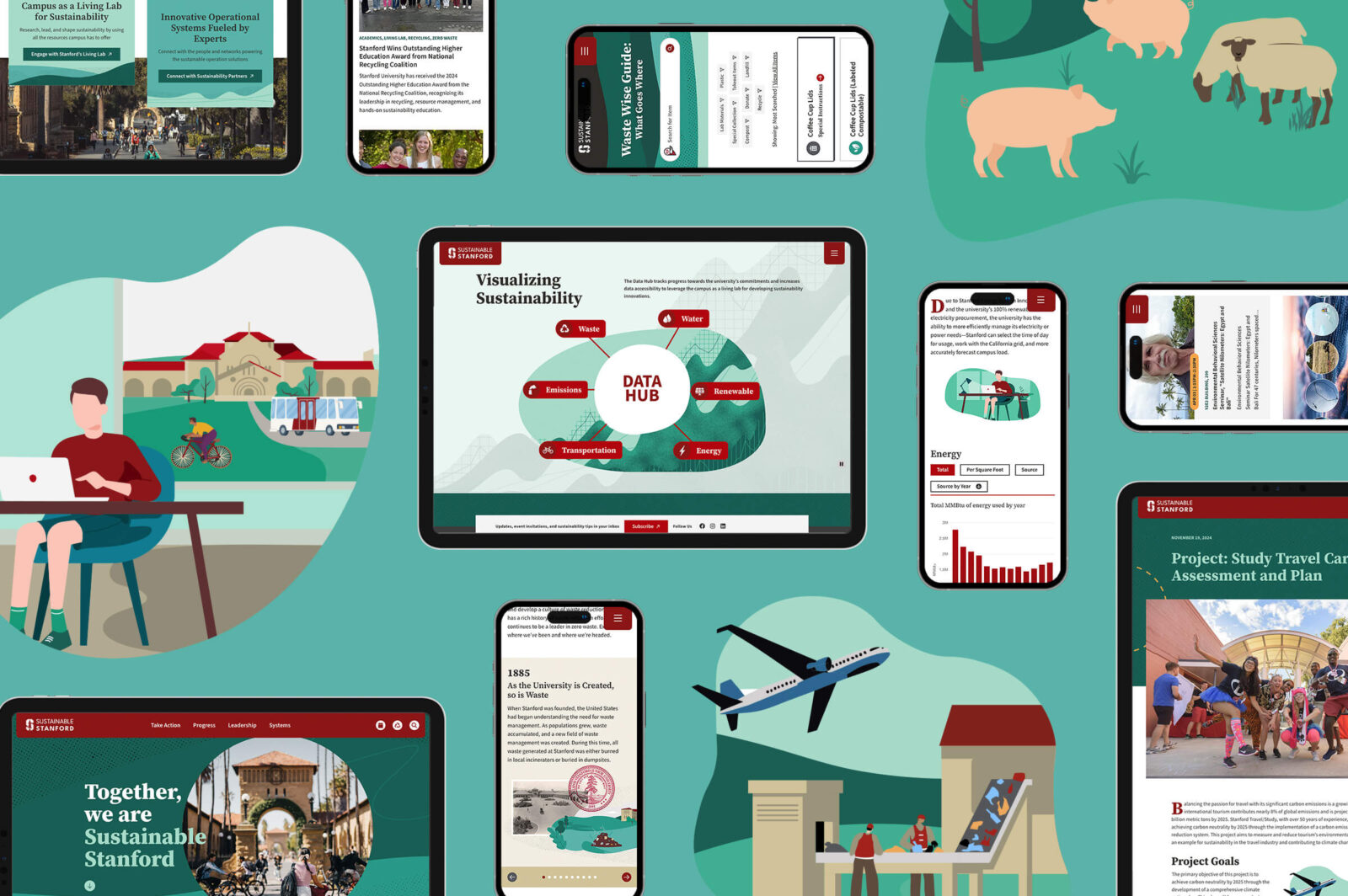 The Sustainable Stanford website is the culmination of years of vision, collaboration, and strategic consultation. The website combines cross-departmental efforts to highlight achievements, share critical data, and tell powerful, purpose-driven stories.